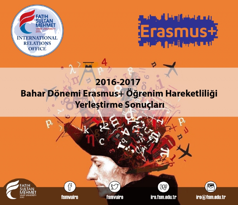 2016-2017 Bahar Dönemi Erasmus Öğrenim Hareketliliği nihai yerleştirme sonuçları PDF dosyasında yer almaktadır.