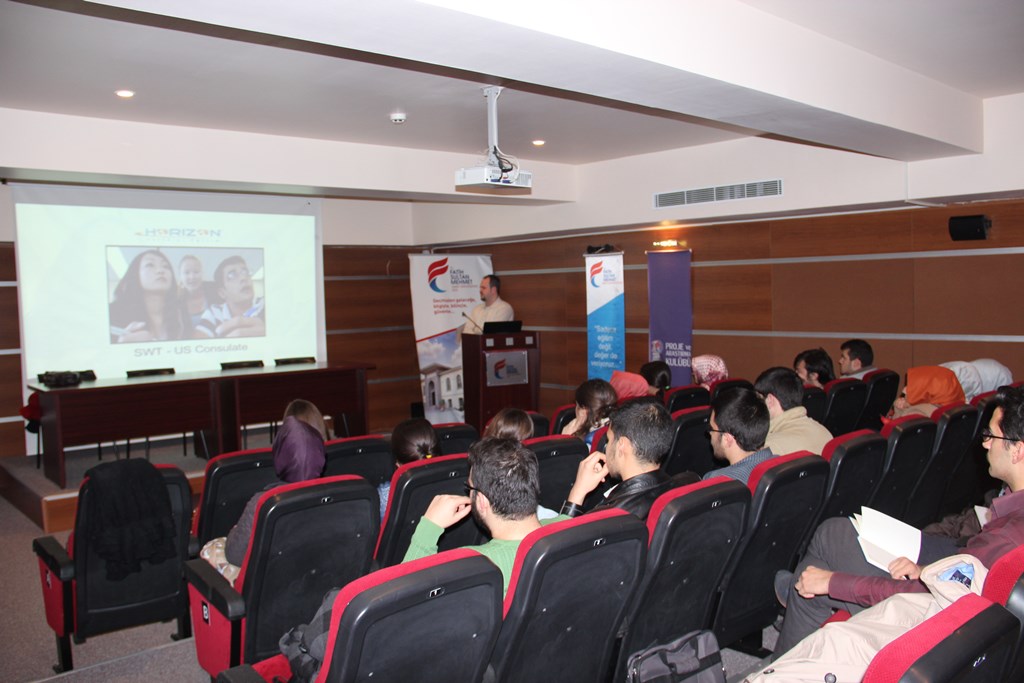 Programın detayları Horizon Yurtdışı Eğitim Danışmanları Pelin Sırman ve Murat Öner tarafından sunuldu. İngilizce Hazırlık Programında en başarılı 15 öğrencimizin tam burs ile başarısının ödüllendirileceği bu programa, aynı zamanda dileyen tüm hazırlık ve lisans-lisansüstü öğrencilerimizinde katılabilecekleri bildirildi.